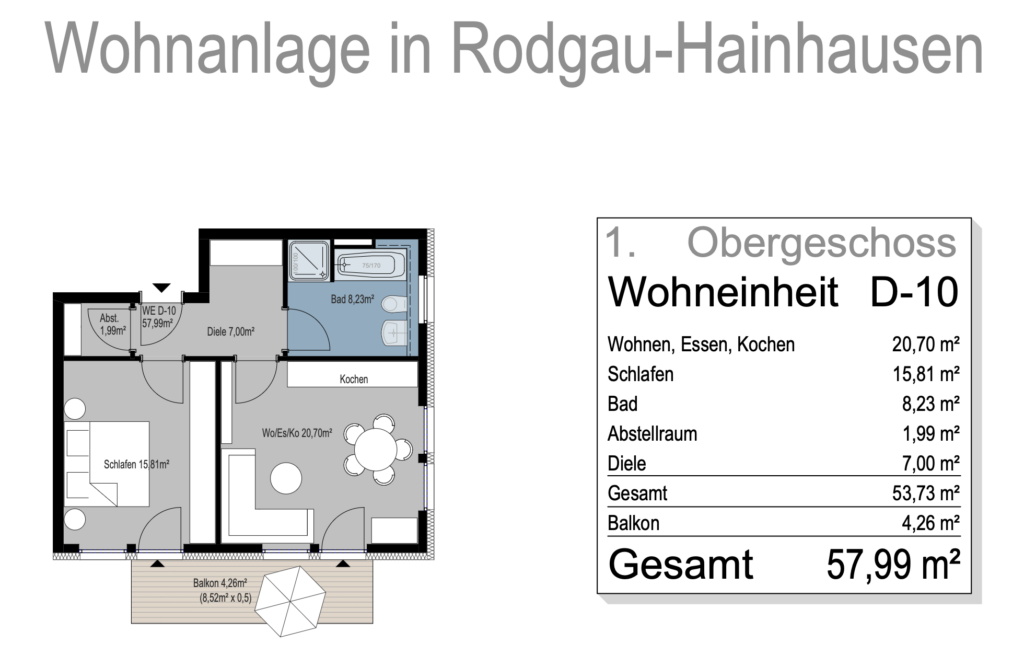 Wohneinheit D-10 im 1. Obergeschoss – 57,99 m²